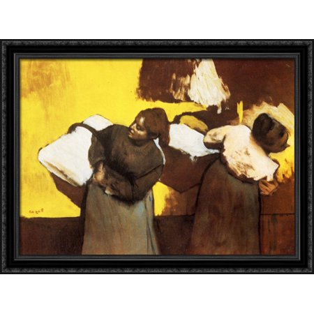 Laundresses Carrying Linen in Town 36x28 Large Black Ornate Wood Framed Canvas Art by Edgar Degas