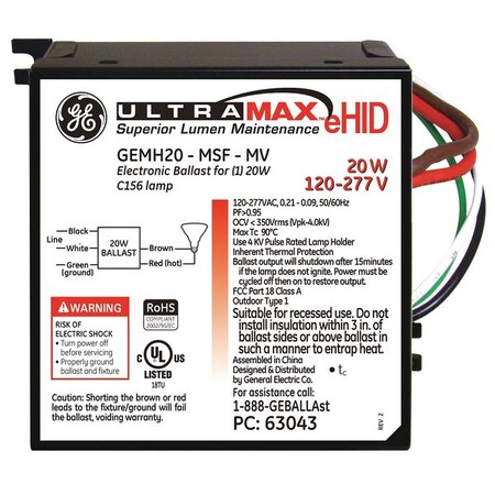 GE 63043 HID ULTRAMAX EHID ELECTRONIC LOW FRECUENCY BALLAST, HIGH INSTENSITY DISCHARGE TECHNOLOGY, 12-PACK