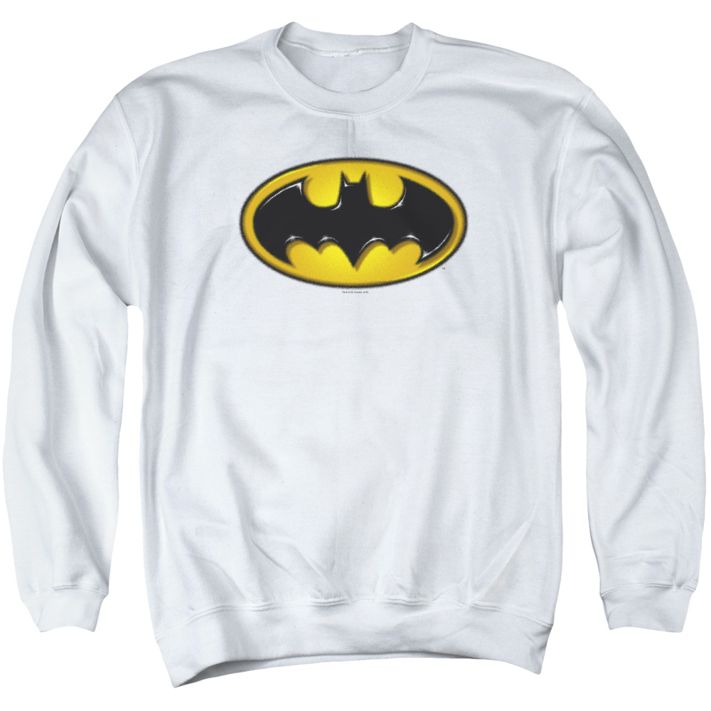 Trevco BM2849-AS-6 Batman & Airbrush Bat Symbol Long Sleeve Adult Crewneck Sweatshirt, White - 3X