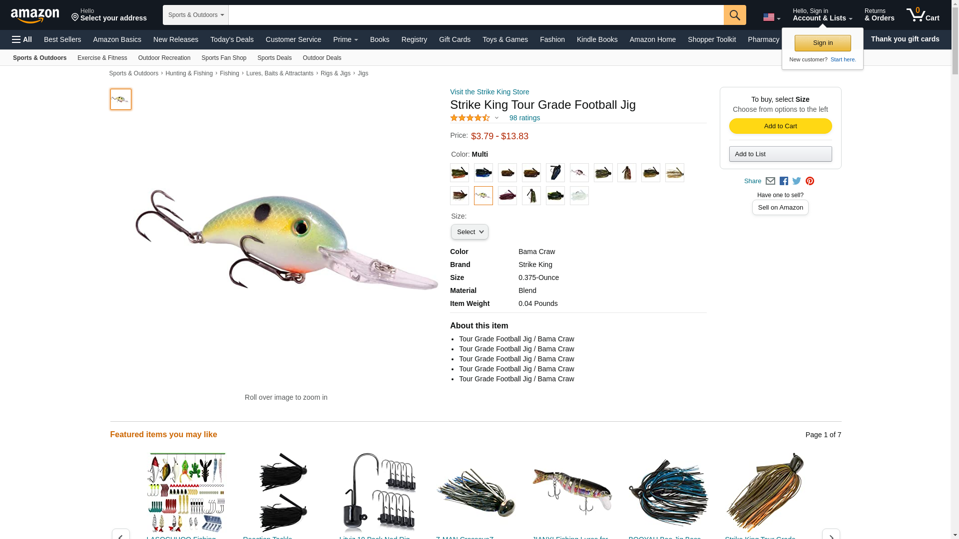 | Feature | The Strike King Tour Grade Football head jig is the ultimate jig for Deep water fishing. |