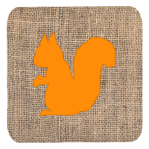 Squirrel Burlap And Orange Foam Coasters - Set 4- 3.5 x 3.5 In.