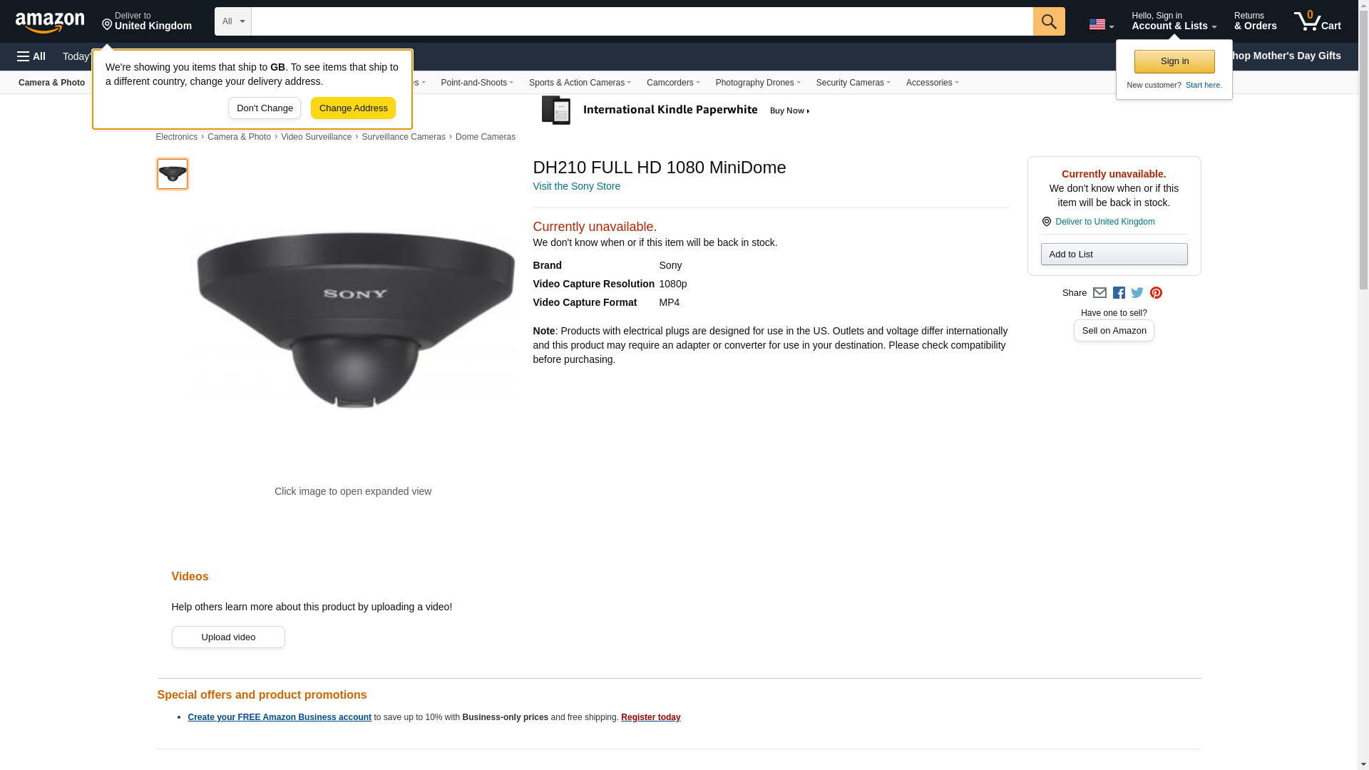 Sony Electronics Inc Cmp. SNC-DH210/B Network 1080P Resolution Hd 3.0 Megapixel Minidome Camera Poe, Black Base