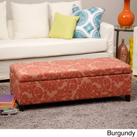 This charming Bolbolac Flower storage bench features a beautiful floral theme on its fabric upholstery and espresso-finished block feet. Lift the hinged seat to reveal ample storage space inside this piece of furniture. <br /> <br />The base is cherry oakwood, with a dark espresso finish for an upscale look wherever you place it. Choose from several upholstery options to enhance or existing color palette or provide an entirely new one. In addition to storage, this stout bench can be used for seating, making it a great choice for unexpected guests. <br /> <br /> <ul> <li>Materials: China oakwood base</li> <li>Finish: Espresso</li> <li>Upholstery material: Fabric</li> <li>Upholstery color options: White flower, beige flower, coffee flower, light burgundy flower</li> <li>Bench features room for storage</li> <li>Fabric upholstered bench can used as seating</li> <li>Dimensions: 15 inches high x 48 inches wide x 15 inches deep </li> <li>Interior dimensions: 15 inches high x 46 inches wide x 9.5 inches deep</li> <li>Weight: 38 pounds </li> </ul>