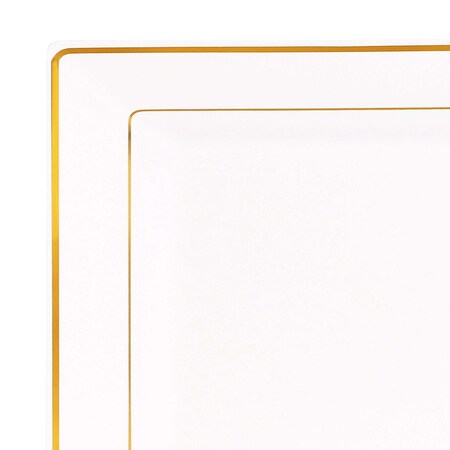 9.5" White with Gold Square Edge Rim Plastic Dinner Plates (120 Plates), 120PK