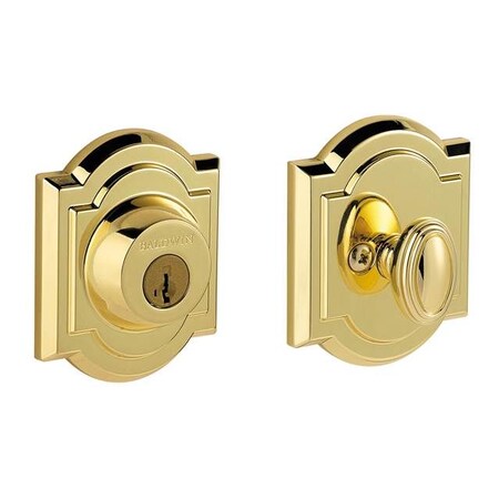 Baldwin Prestige 380 Arched Single Cylinder Deadbolt Featuring SmartKey in Lifetime Polished Brass