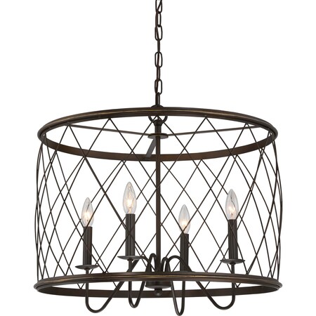 Quoizel RDY2823PN Dury Cage Drum Pendant Lighting, 4-Light, 240 Watts, Palladian Bronze (20" H x 23" W)