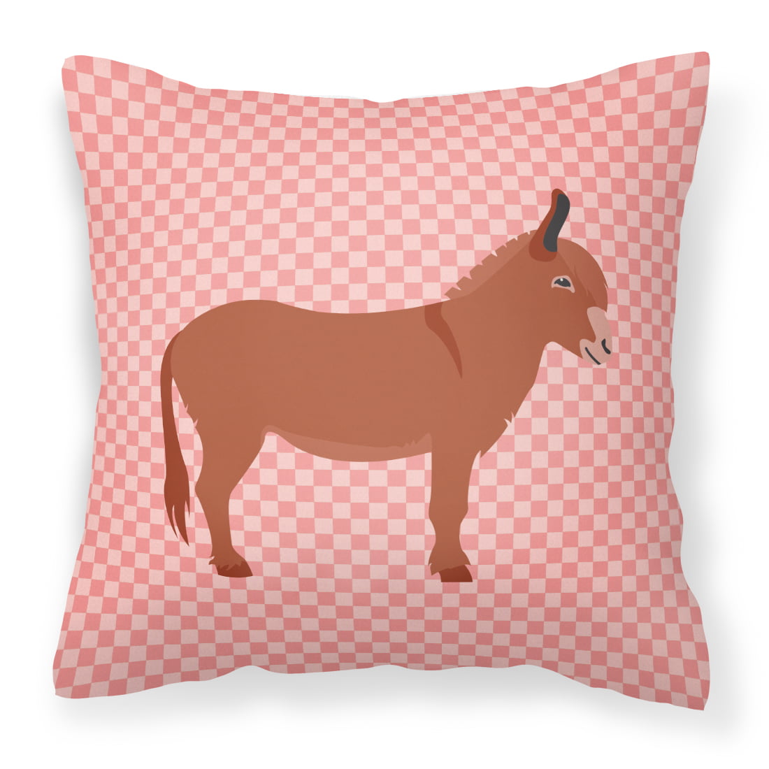 Carolines Treasures BB7848PW1414 Irish Donkey Pink Check Fabric Decorative Pillow, 14 x 14 in.