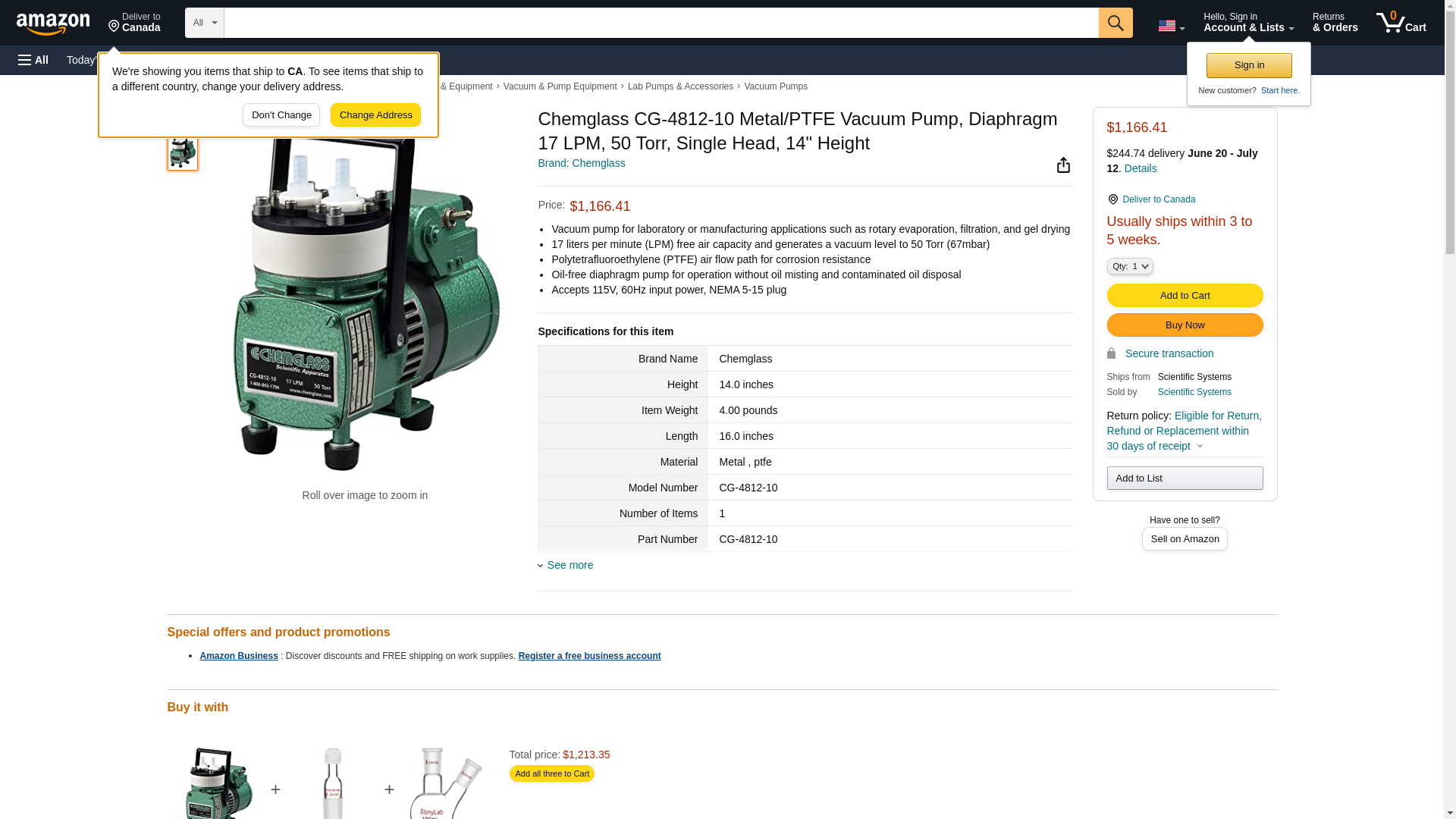 Chemglass Vacuum Pump 17L/MIN, 50 Torr CG-4812-10 FREE S&H . Chemglass Reusable glass.