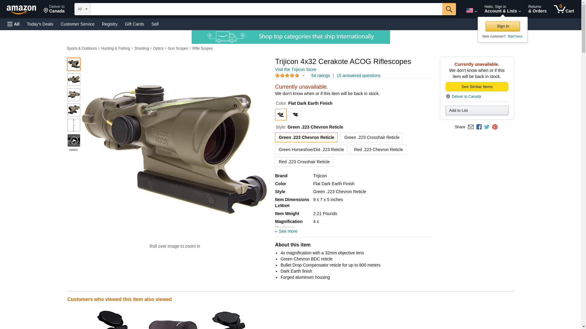 Trijicon ACOG 4x32 Dual Illuminated Green Chevron, Cerakote Flat Dark Earth Md: Ta31-D-100313 - 11128801