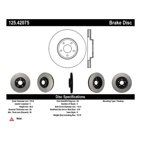 Centric Premium High Carbon Alloy Rotor Front Nissan Maxima 2005 | 125.42075