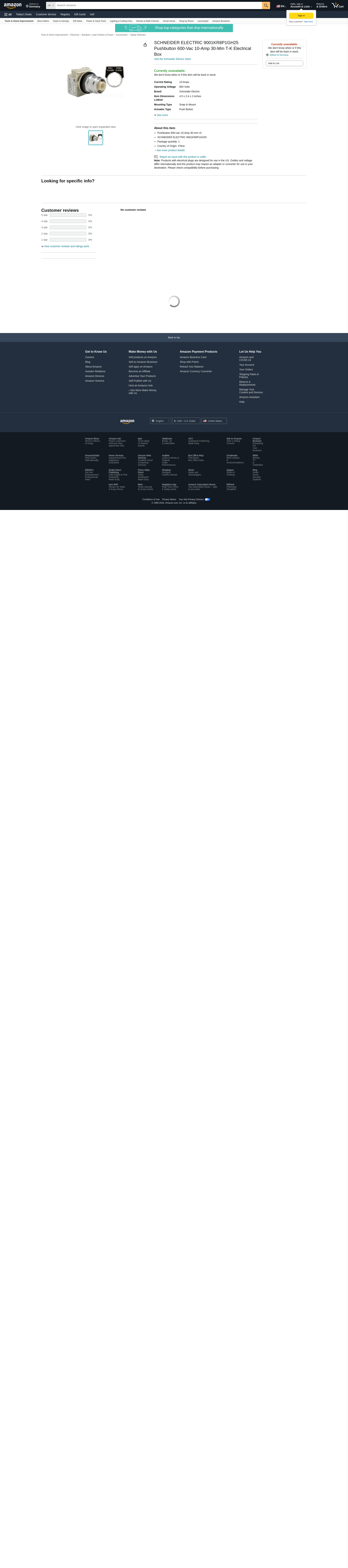 SCHNEIDER ELECTRIC 9001KR8P1GH25 Pushbutton 600-Vac 10-Amp 30-Mm T-K Electrical Box