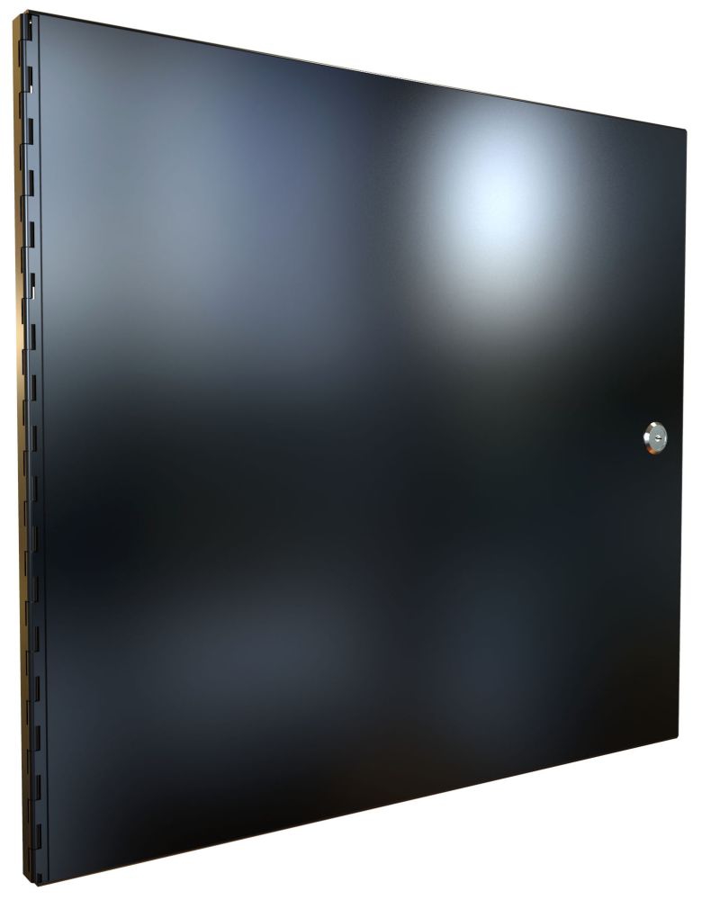 - Price For: Each Accessory Type: Hinged Panel Rail Door For Use With: Panel Mount Rack Cabinets Enclosure Material: Steel Body Color: Black External Height: 17.38" External Width: 19" Color: Black Weight: 8lb RoHS Compliant: Yes