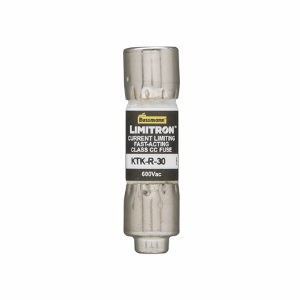 Featuring a melamine tube and nickel-plated brass endcaps, this fast-acting fuse provides general purpose circuit protection. Functional equivalent: Mersen ATMR.<br /><br /> Item: Fuse<br /> Fuse Amps: 4/10A<br /> Indicating / Nonindicating: Nonindicating<br /> Series: KTK-R<br /> Fuse Voltage Rating: 600VAC<br /> Fuse Speed: Fast Acting<br /> Class: CC<br /> Element: Single<br /> Body Material: Melamine<br /> Rejection / Nonrejection: Rejection<br /> Body Style: Cylindrical<br /> Fuse Interrupt Rating: 200kA at 600VAC<br /> Length: 1-1/2"<br /> Diameter: 13/32"<br /> Functionally Equal To: Mersen/Ferraz Shawmut ATMR, Littelfuse KLKR<br /> Standards: CE/UL-248-4 Guide JDDZ/CSA Class 1422-02<br /> Green Environmental Attribute: RoHS Compliant<br />