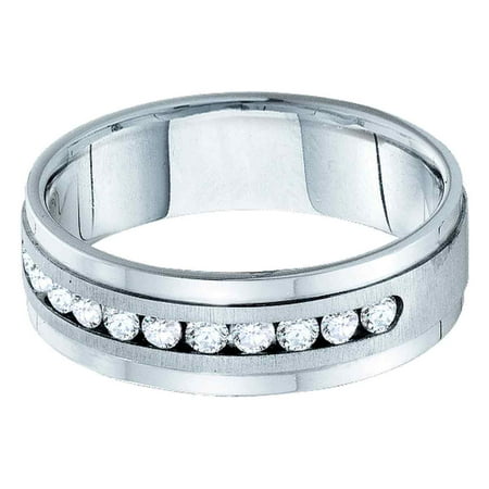 <p><span style="font-size:16px;"><b><u>Description</u></b><br /></span></p> <p><span style="font-size: 14px;">14kt White Gold Mens Round Diamond Band Wedding Anniversary Ring 1.00 Cttw</span></p> <br /> <p><span style="font-size:16px"><u><b>Gemstone Details</b></u></span></p> <p><span style="font-size:14px">1.00 Carats total weight<br /><br />All diamonds are natural and conflict-free in origin<br /><br /><b>Round Diamond</b><br /></span></p> <li>1.00 ct.t.w.</li> <li>I1 clarity</li> <li>H-I color</li> <li>Channel setting<br /><p><span style="font-size:16px"><u><b>Specifications</b></u><br /></span></p><p><span style="font-size:14px">14kt White Gold<br />Widest point width: 7 mm (.28 inches )<br />Width of shank: 6 mm<br />11.38 grams (approximately)<br />Ring size selectable</span></p><p><span style="font-size:11px">Combined diamond weight of 1.00 carats total weight represents a range of 0.95 - 1.05 cts. t.w.</span></p></li>