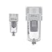 <p>SMC s newest micro mist separator, series AFD is available in 3 sizes; 1/4 (20), 3/8 (30) and 1/2 (40). Rc(PT), PF and NPT threads are available. Port sizes range from 1/8 to 3/4. Body size 30 and 40 now have a transparent bowl guard that offers 360 visibility, while completely protecting the bowl from the environment. Accessories include a bracket, and float type auto drain.<br /></p>