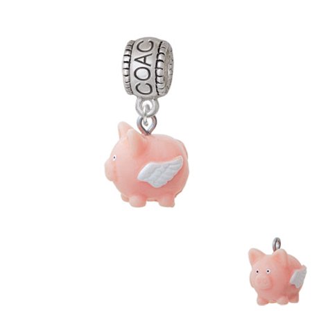 Hand Painted Resin Flying Pink Pig - Coach Charm Bead Hanger. Resin Flying Pink Pig is approximately 0.63 x 0.48 x 0.58 inches (HxWxD). Light weight alternative to metal charms. Charm Hanger Bead is approx. 13x10x8 mm (HxWxD) Hole size 5.5 mm. Our Charm Beads are compatible with most Charm Bead Bracelets. Also makes a great charms pendant. Featured charms is an exclusive Delight & Co. design. We are a family owned company for over 35 years in the U.S.A. PLEASE NOTE: Our products are lead safe, but are not intended for children 14 years and younger.