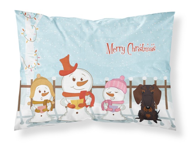 Carolines Treasures BB2460PILLOWCASE Merry Christmas Carolers Wire Haired Dachshund Chocolate Fabric Standard Pillowcase