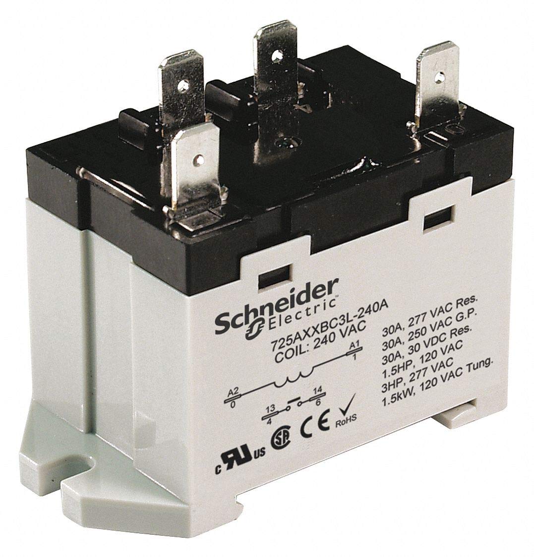 Schneider Electric/legacy Relay Relay, Spst-No, 277Vac, 30Vdc, 30A - 725AXXBC3ML-12D