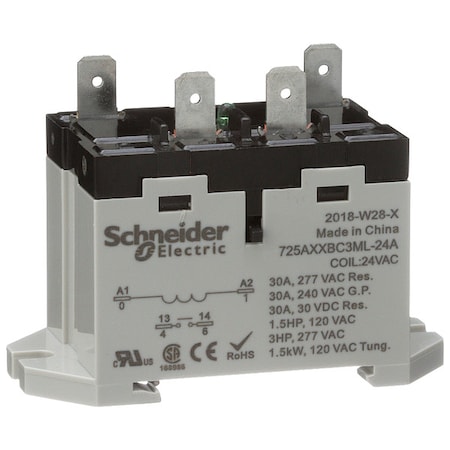Schneider Electric/legacy Relay Relay, Spst-No, 277Vac, 30Vdc, 30A - 725AXXBC3ML-24A