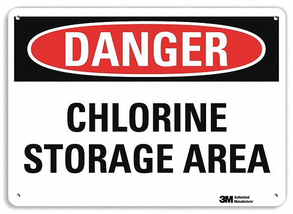 Danger Sign, Vertical Rectangle, Number of Printed Sides 1, English, Sign Format Traditional OSHA, Sign Legend Chlorine Storage Area, Sign Legend Background Color White, Sign Legend Style Text