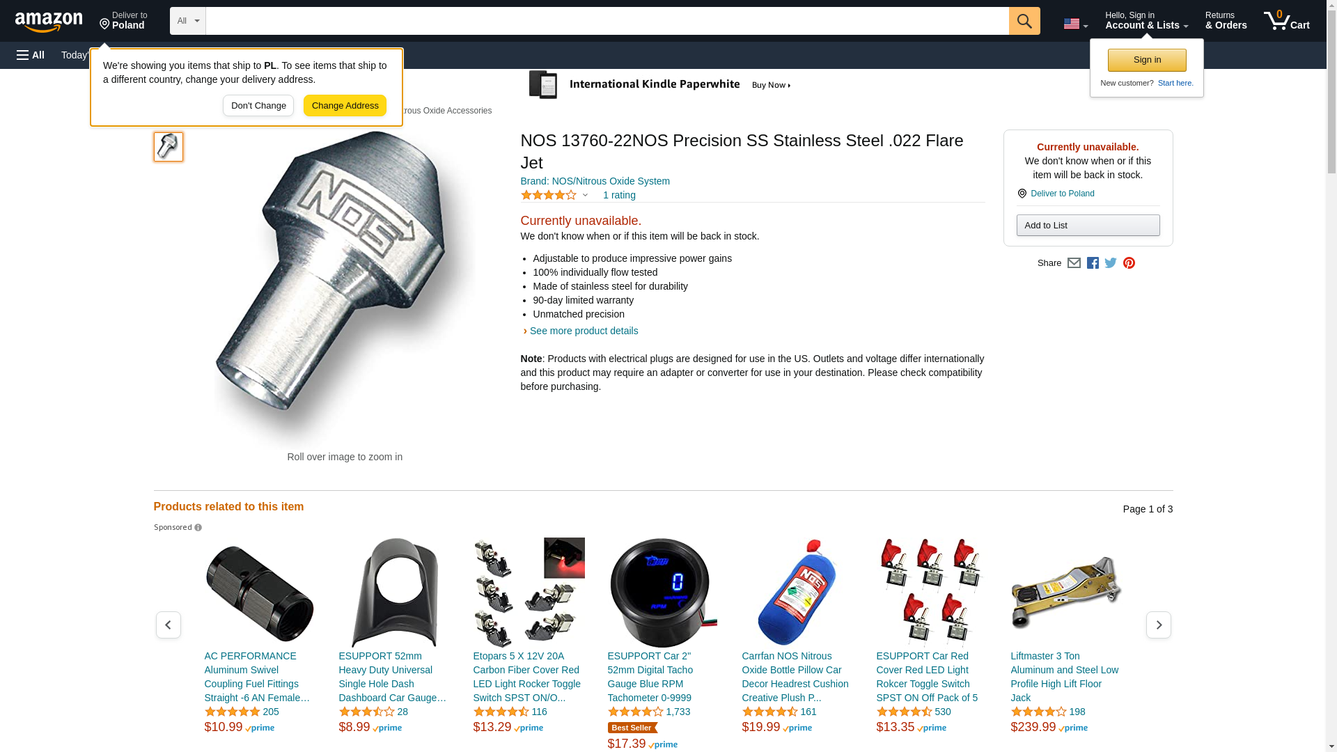 - Precision SS; Stainless Steel Nitrous Flare Jet; Size 0.022 in.;