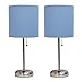 Limelights LC2001-BLU-2PK Stick Charging Outlet Fabric Shade 2 Pack Table Lamp Set, Brushed Steel/Blue, 2 Count
