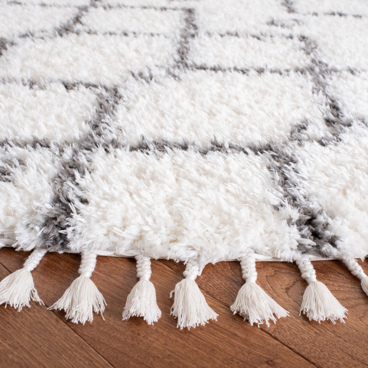 Safavieh FLK312A-28 Flokati Shag Power Loomed Runner Area Rug, Ivory & Dark Grey - 2 ft.-2 in. x 8 ft.