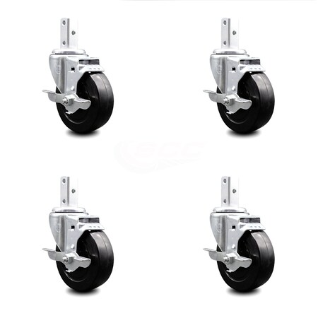 Swivel Square Stem Caster Set 4 w/4” x 1.25” Black Soft Rubber Wheel-7/8” x 2” Square Stem with (3) 17/64” Diameter Mounting Holes-Includes 4 Top Lock Brakes-800lbs. Cpty/Caster - Service Caster Brand