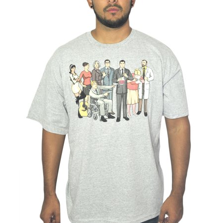 Light grey short sleeve tee, crew neck with full color Archer's main characters graphic. 100% Licensed and Authentic.