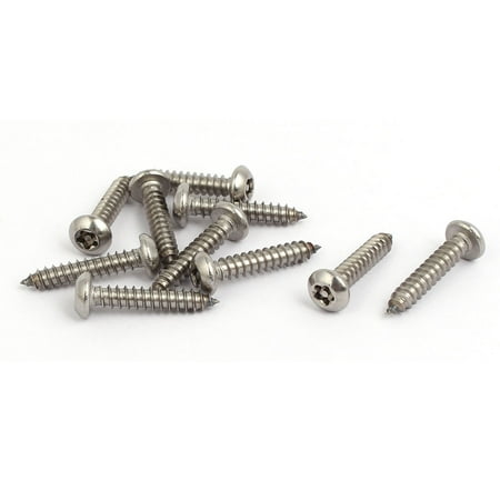 <ul> <li>Material: 304 Stainless Steel; Weight: 33g; Total Length: 27.5mm / 1.1"</li> <li>Head Diameter: 9.4mm / 0.37"; Thread Diameter: M4.8 / 0.19"</li> <li>Thread Length: 25mm / 1"; Bit Driver Size: T25</li> <li>Head Style: Pan Head; Drive Type: Torx</li> </ul>