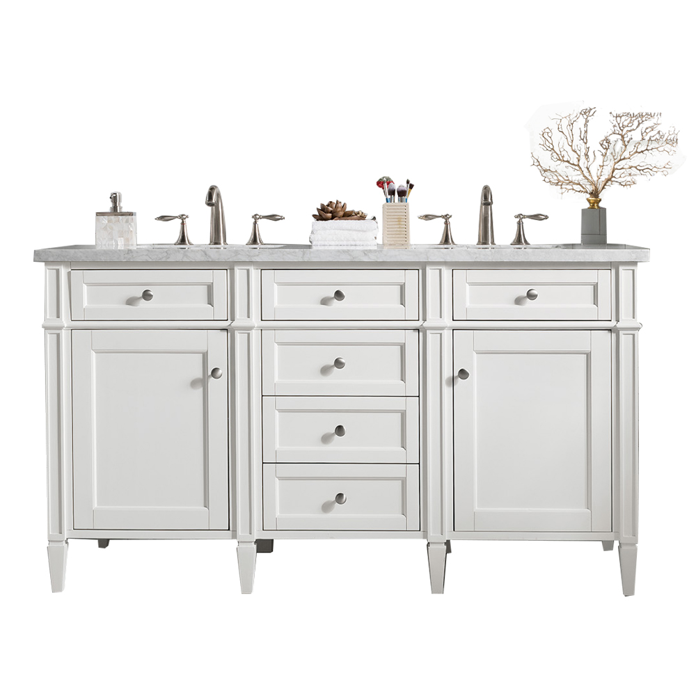 James Martin Vanities 650-V60D-3CAR Brittany 60" Double Basin Poplar Wood Vanity Set with 3 cm Carrara White Natural Stone Vanity Top and Rectangular Sinks - Bright White