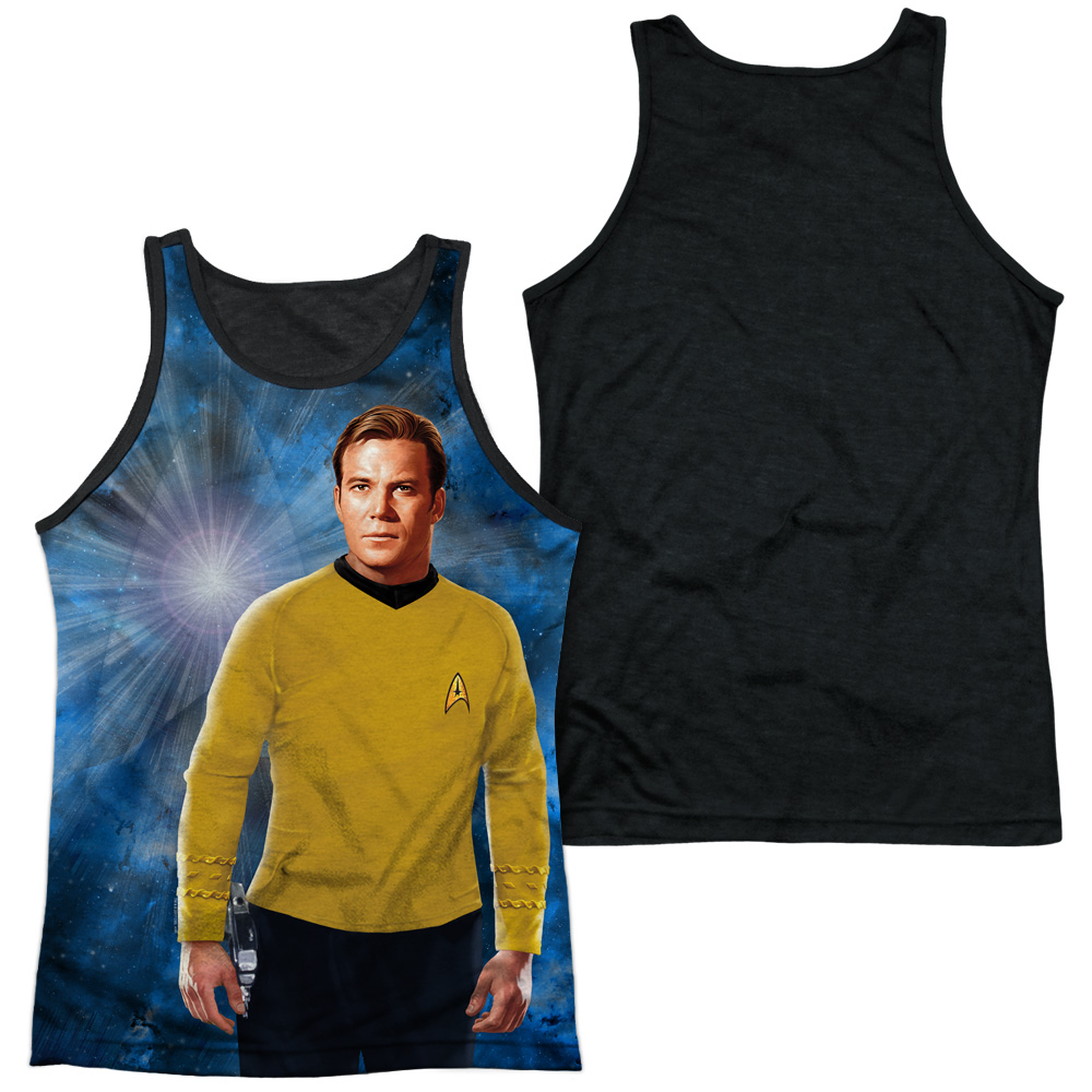Trevco CBS1892-TKBB-1 Star Trek & Ship for My Captain Adult Polyster Black Back Poly Tank Top, White - Small