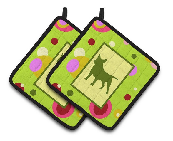 Carolines Treasures CK1046PTHD Lime Green Dots Bull Terrier Pair of Pot Holders, 7.5 x 3 x 7.5 in.