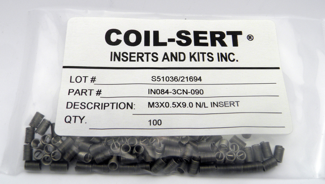 Helically Coiled Inserts are precision formed from a diamond shaped wire made out of 18-8 stainless steel (type 302/304). They are work hardened to a tensile strength above 200,000 to 250,00 P.S.I. and a hardness of Rc 43-50. The finished surface (8-16 micro inches) is smooth, which eliminates friction induced thread erosion. When installed into a tapped hole, the insert provides permanent conventional screw threads. Helically Coiled Coil-Sert? Inserts are precison formed from a diamond shaped wire Screw Thread Inserts are available in Standard (Free Running ) and Screw-Lok Type.