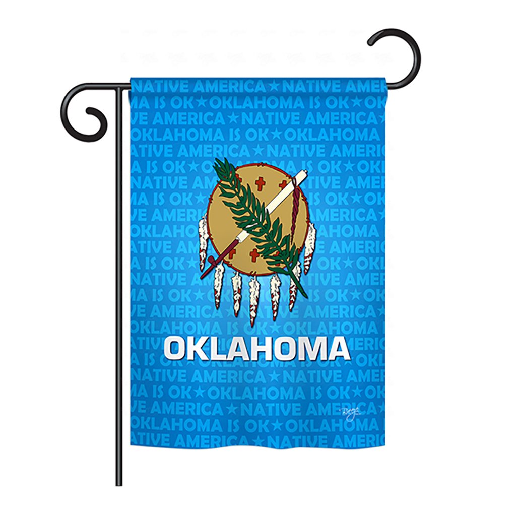 Breeze Decor BD-SS-GS-108131-IP-BO-D-US13-BD 13 x 18.5 in. Oklahoma Americana States Impressions Decorative Vertical Double Sided Garden Flag Set with Banner Pole