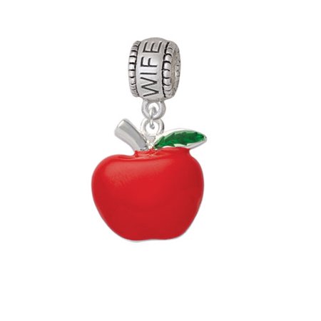 Silver Tone Large Apple - Wife Charm Bead Hanger. Silver Tone, hand enameled charms. Charm size is approx. 0.79 x 0.71 x 0.18 inches (HxWxD) including loop. Charm Hanger Bead is approx. 13x10x7 mm (HxWxD) Hole size 5.5 mm. Our Charm Beads are compatible with most Charm Bead Bracelets. Also makes a great charms pendant. Featured charms is an exclusive Delight & Co. design. We are a family owned company for over 35 years in the U.S.A. PLEASE NOTE: Our products are lead safe, but are not intended for children 14 years and younger.
