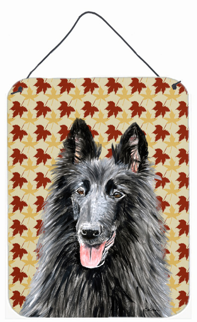 Carolines Treasures SC9238DS1216 12 x 16 in. Belgian Sheepdog Fall Leaves Portrait Aluminum Metal Wall & Door Hanging Pr