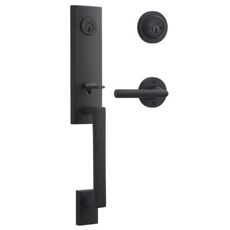 Reserve Seattle Collection - Handleset with Left Handed Tube Lever and Contemporary Round Rose in Satin Black by Baldwin Hardware - DCSEAXTUBLCRR190 | MyKnobs