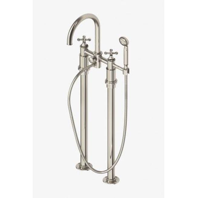 Waterworks - 09-77312-26463 - Dash Floor Mounted Exposed Tub Filler with 1.75gpm Metal Handshower and Cross Handles in Burnished Brass