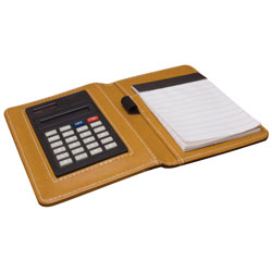 RoadPro RPPT6672-5 Brown 4" x 6" Side-Open Note Pad Holder with Calculator