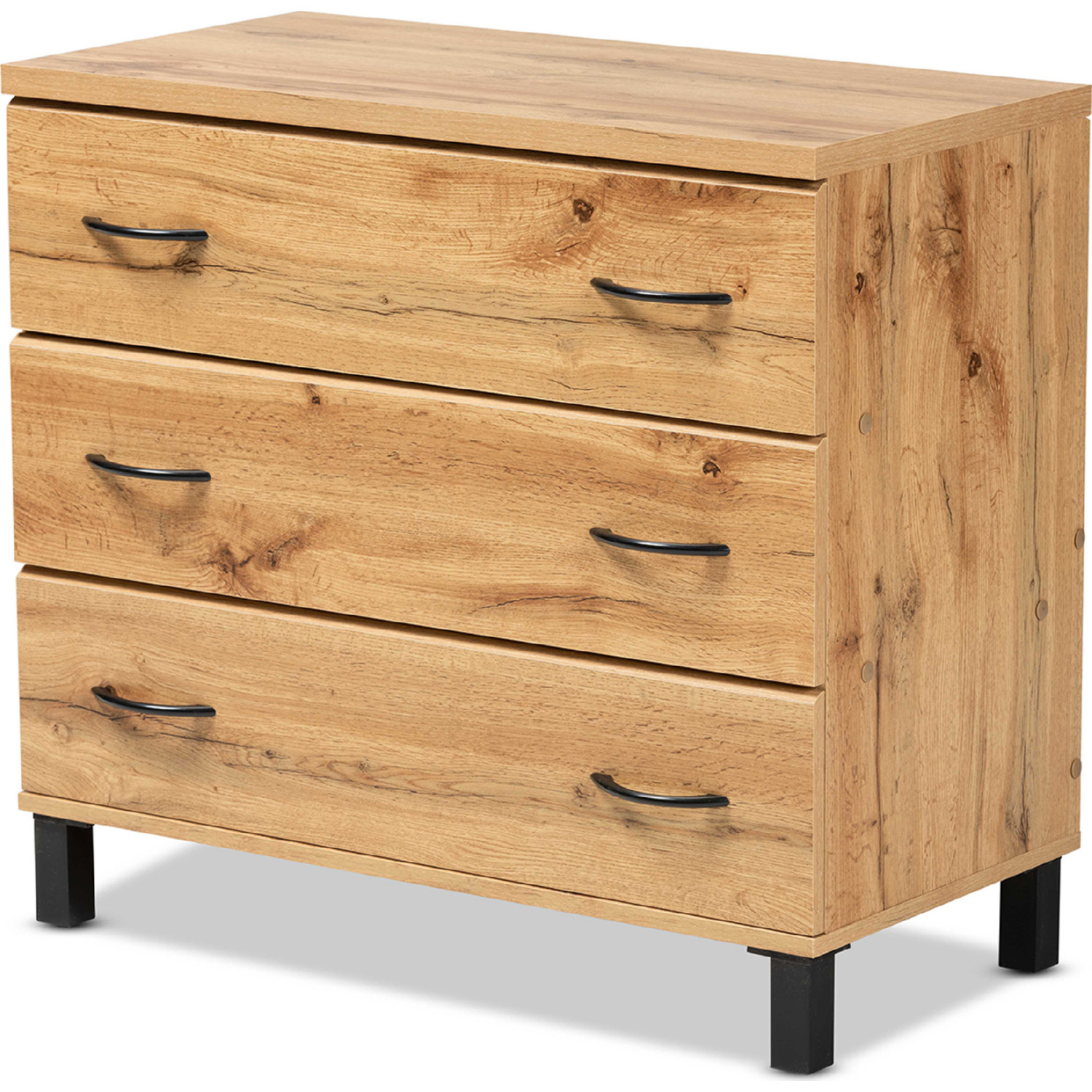 Baxton BR888023-Wotan Oak Maison 3 Drawer Storage Chest in Oak Brown Wood