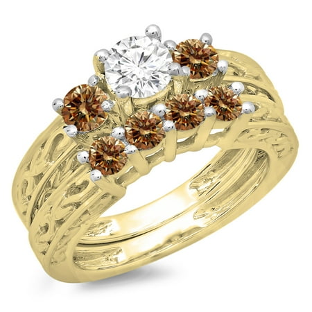 This lovely diamond Ring set features 1.50 ct champagne & white diamonds in 3-stone setting. All diamonds are sparkling and 100% natural. All our products with FREE gift box and 100% Satisfaction guarantee. SKU # DR2332-2400