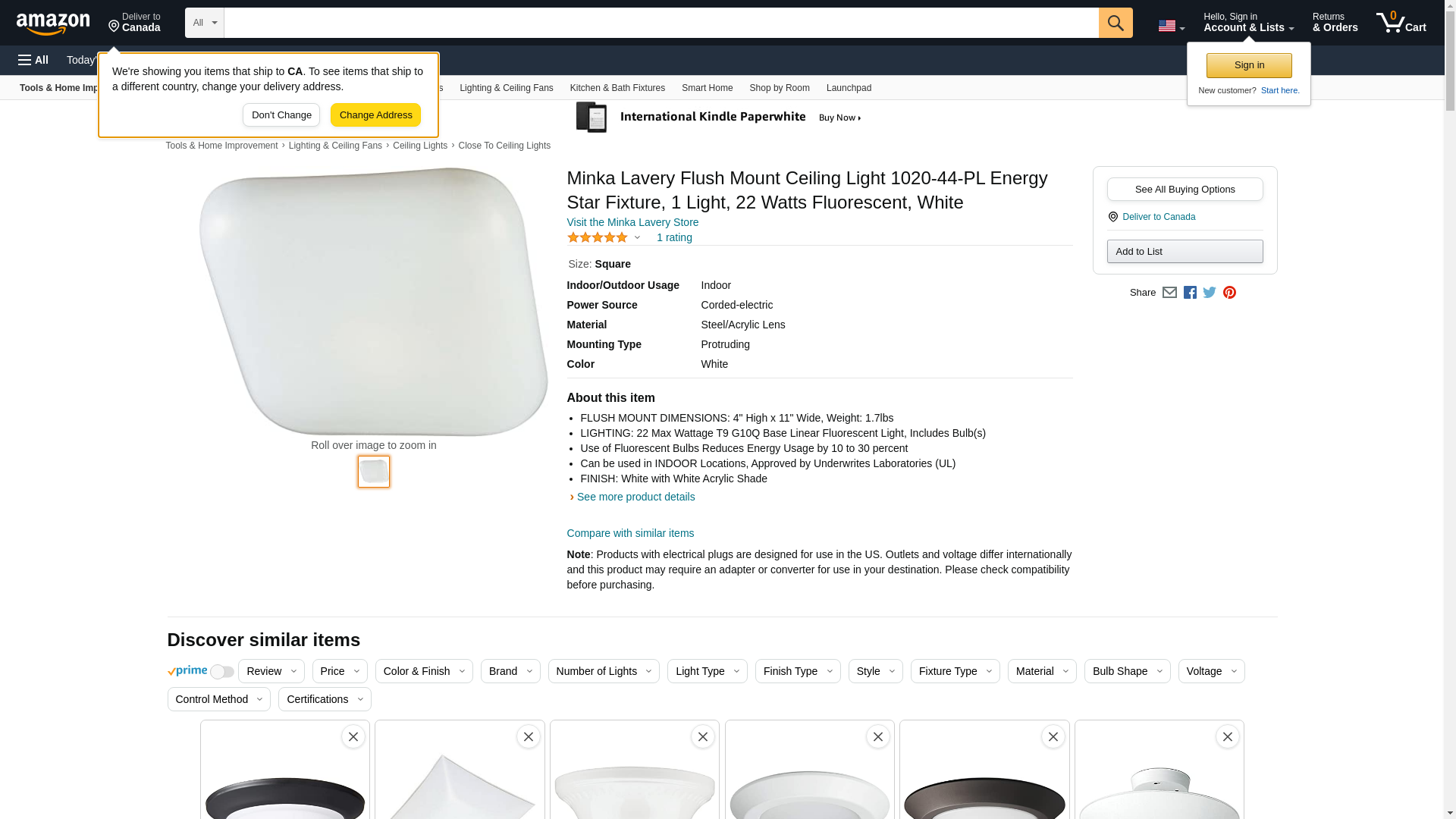 Minka Lavery Flush Mount Ceiling Light 1020-44-PL Energy Star Fixture, 1 Light, 22 Watts Fluorescent, White