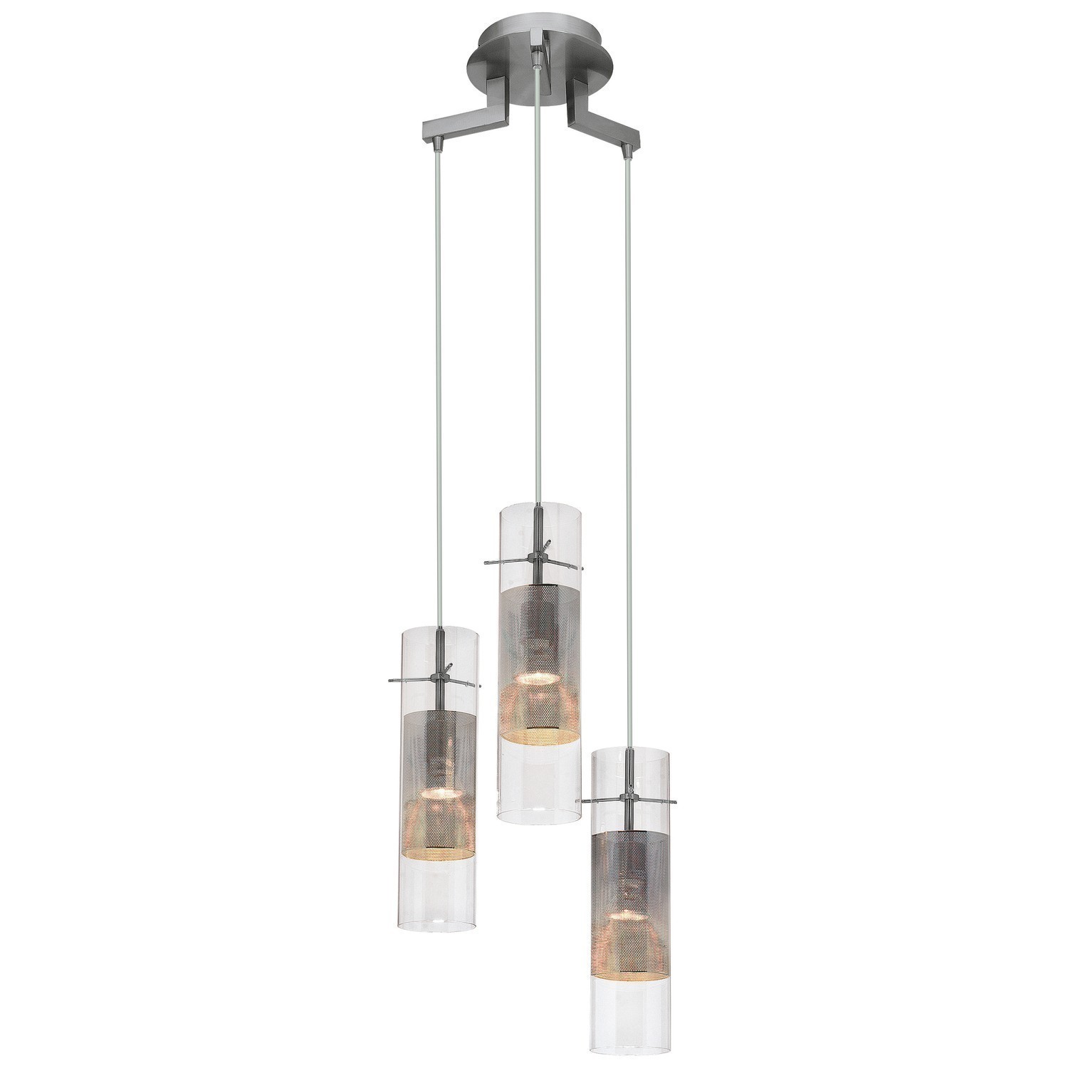 Access Lighting 50526-BS/CLM Spartan - Three Light Pendant, Brushed Steel Finish with Clear Glass with Metal Mesh Shade