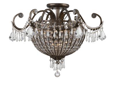 24W Vanderbilt English Bronze Semi Flush Ceiling Light with Majestic Wood Polished Crystal