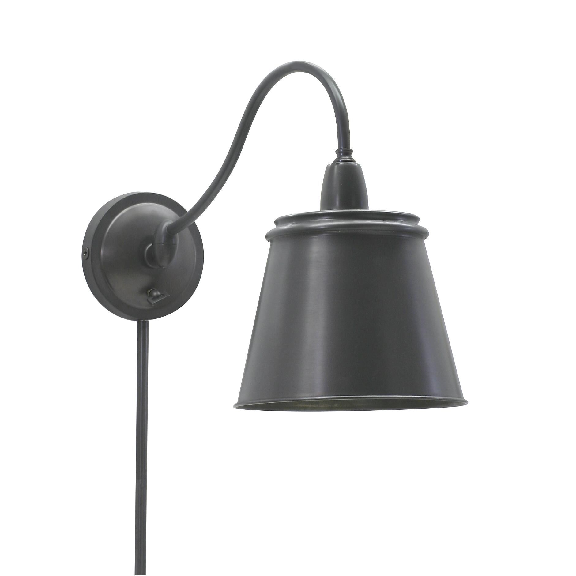 - 10-Inch high by 14-Inch arm reach, full-range dimmer on the back plate, shade swivels for adjustability