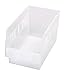 Maximize your storage space with durable, high density tri-clear polypropylene bins. Quantum's Store-More 6"H Shelf Bins are the industry standard for quality. These bins feature a molded-in label holder, built-in rear hang-lock which allows bins to tilt out for complete access when on shelving. A wide hopper front allows complete access to the contents of the bin. Edges are reinforced for added strength. The designed for shelving units, racks or standard shelving. Optional dividers are a perfect solution to create a par level system. Bins are waterproof and corrosion-free. Divider Slots: 8.