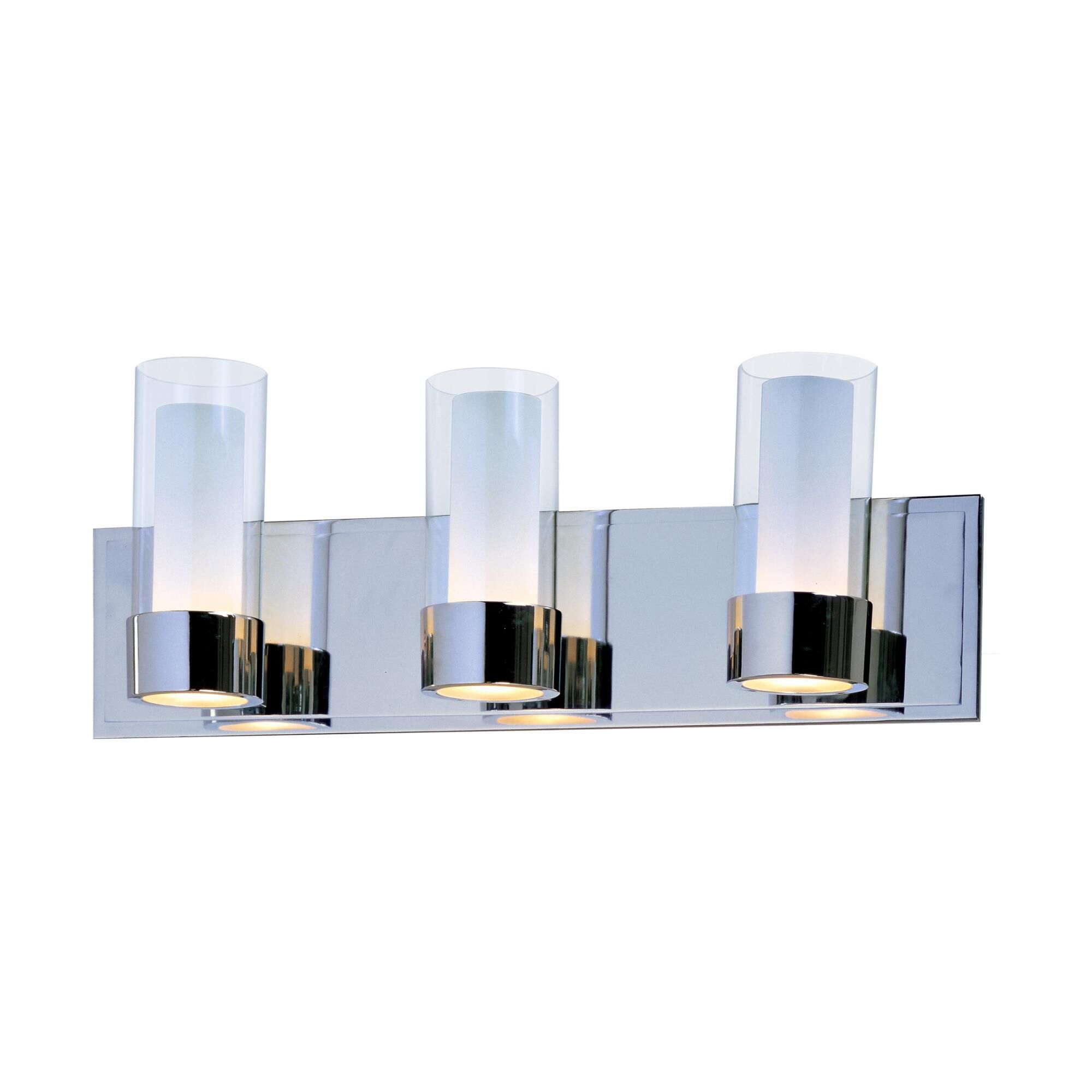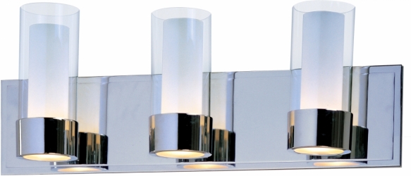 Maxim 23073CLFTPC Silo Clear and Frosted Glass Cylinder Bath Vanity Wall Mount, 3-Light Xenon 120 Total Watts, 8"H x 21"W, Polished Chrome