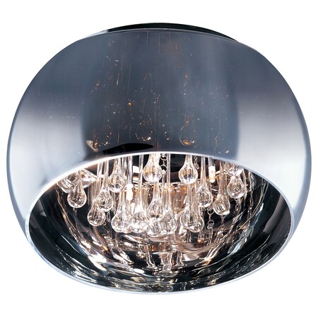ET2 E21201-10PC Sense Mirrored Glass and Crystal Teardrops Round Flush Mount Ceiling Lighting, 6-Light Xenon 240 Watts, 9"H x 20"W, Chrome