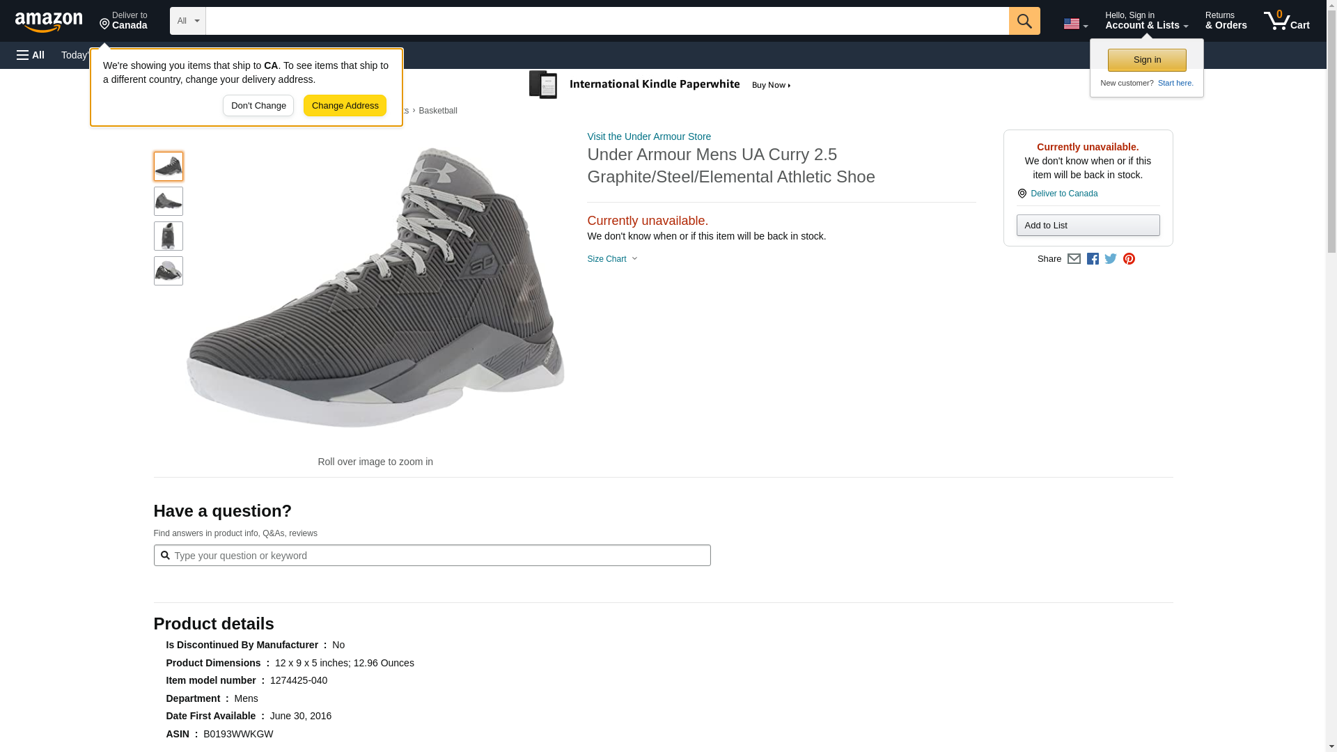 | Feature | Under Armour\xae dominates from downtown with the UA Curry 2.5! |